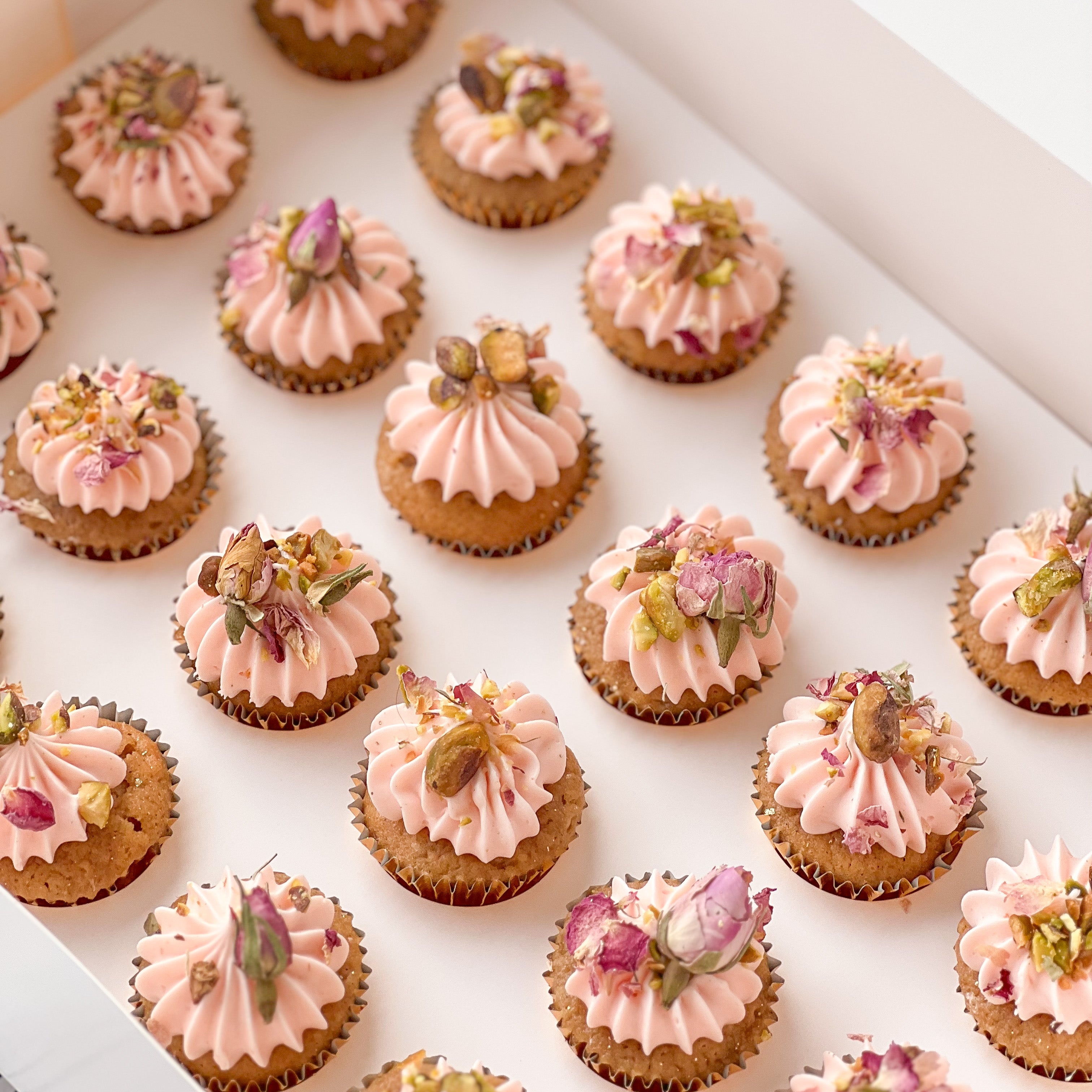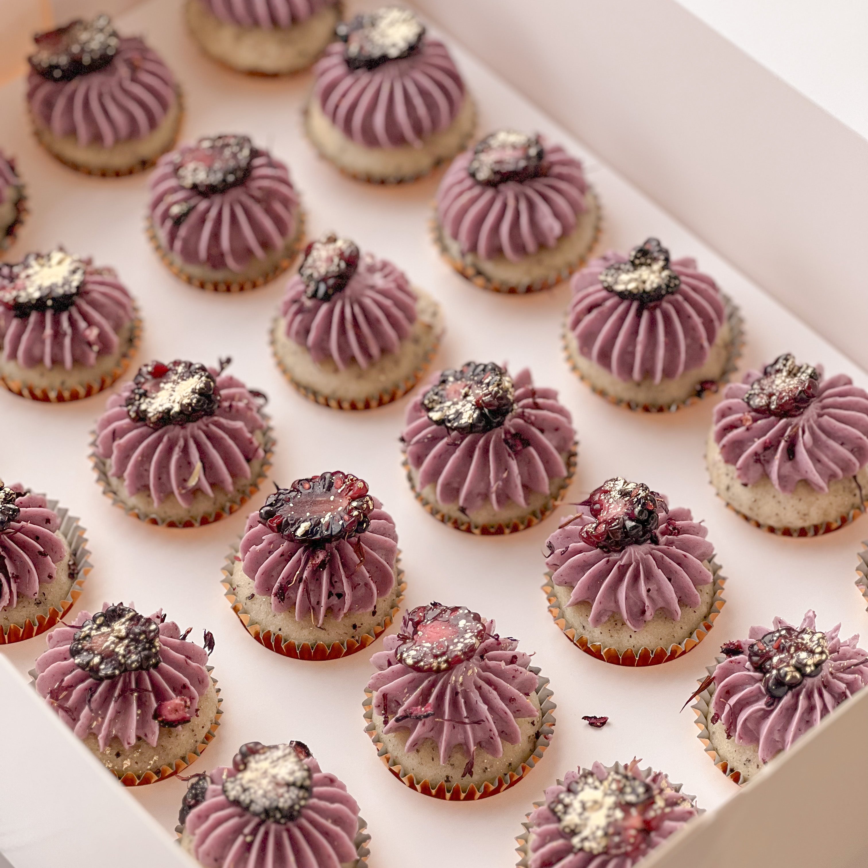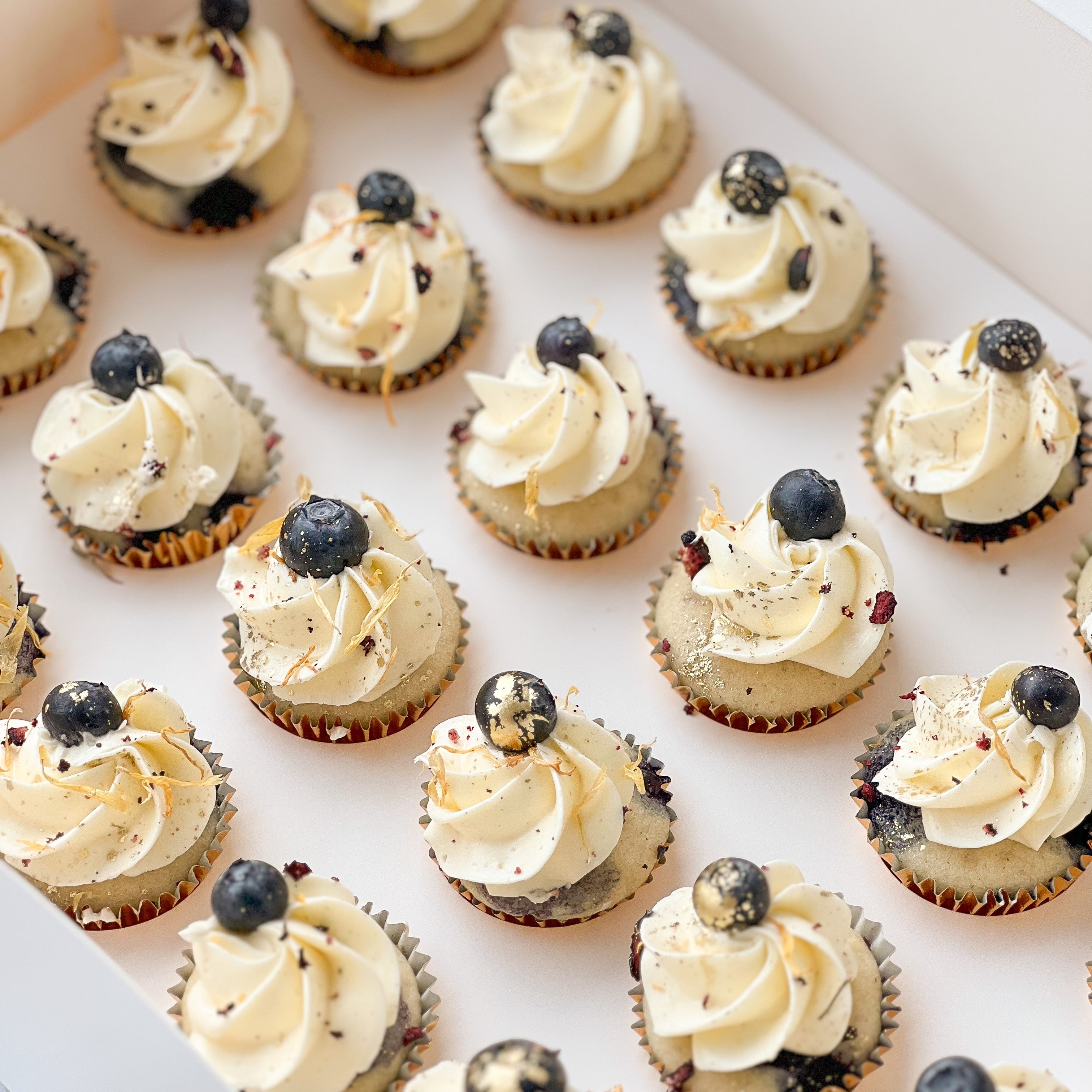 Our signature designs in mini cupcakes or large cupcakes available in boxes of 12 or 24 depending on size.