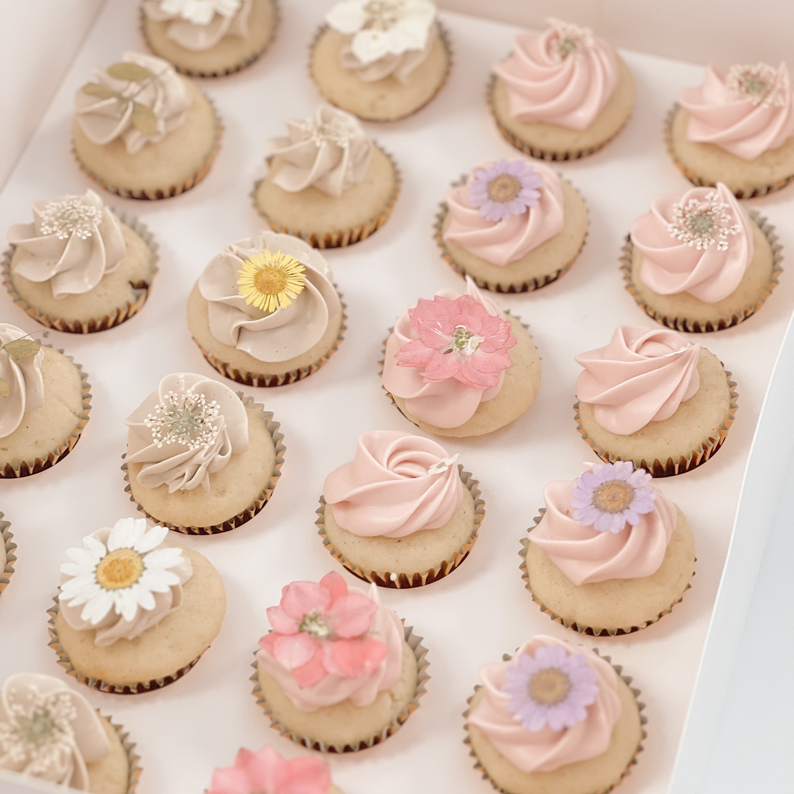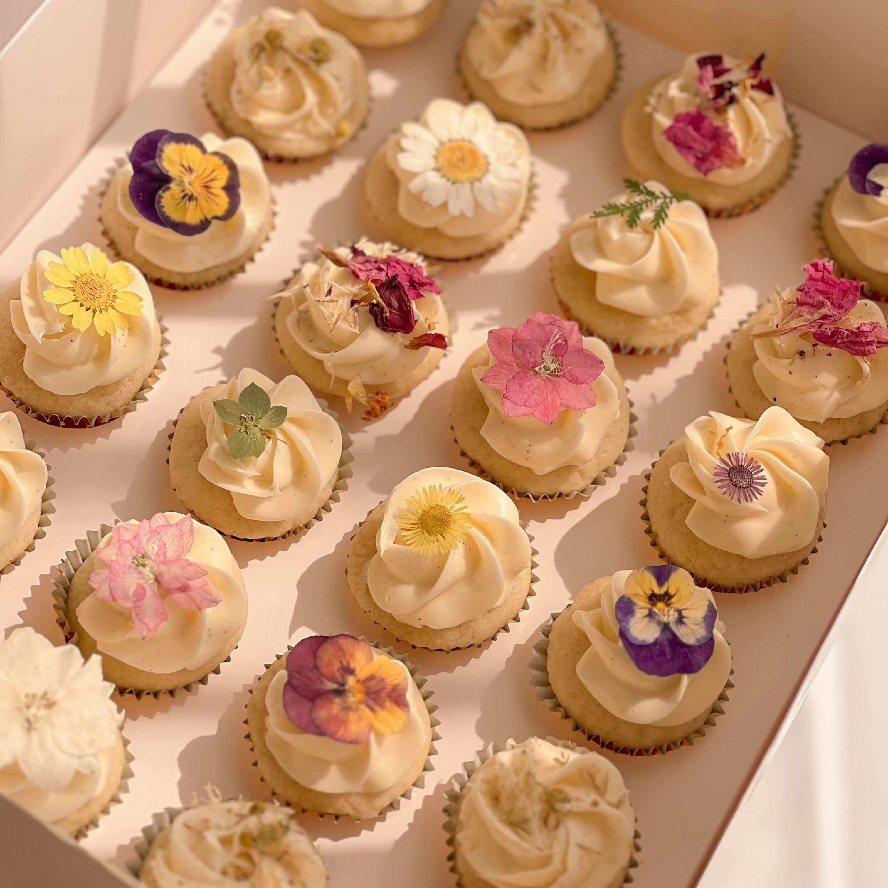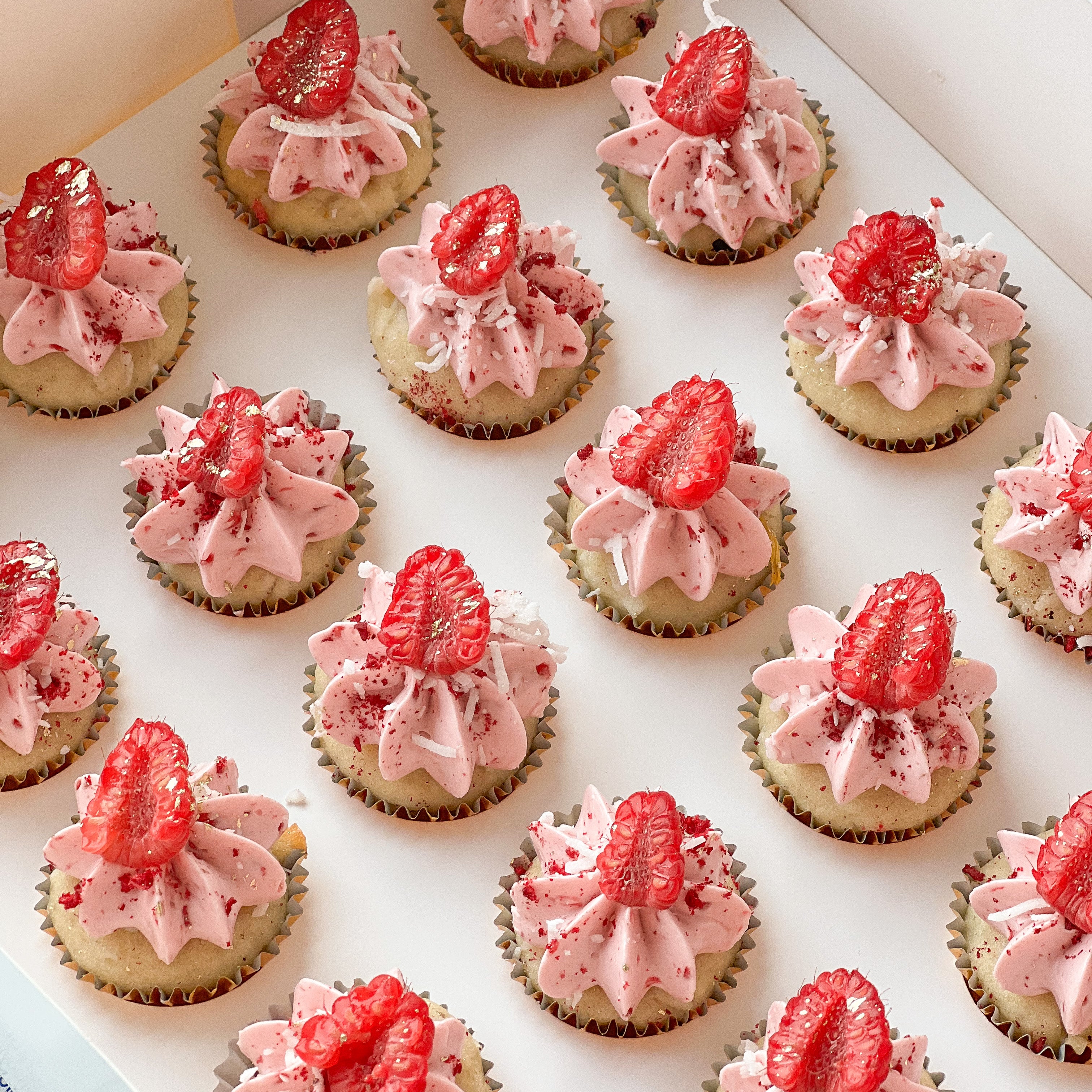 Our signature designs in mini cupcakes or large cupcakes available in boxes of 12 or 24 depending on size.