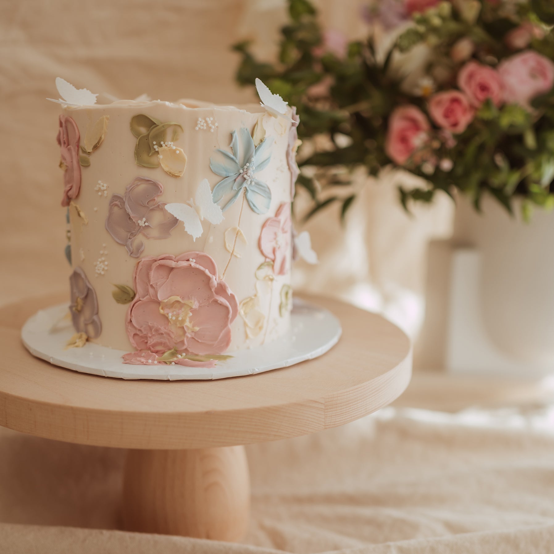An artful version of our much loved "buttercream flower" cake. Your are welcome to request custom colours to fit your event best. Available in your choice of flavour.