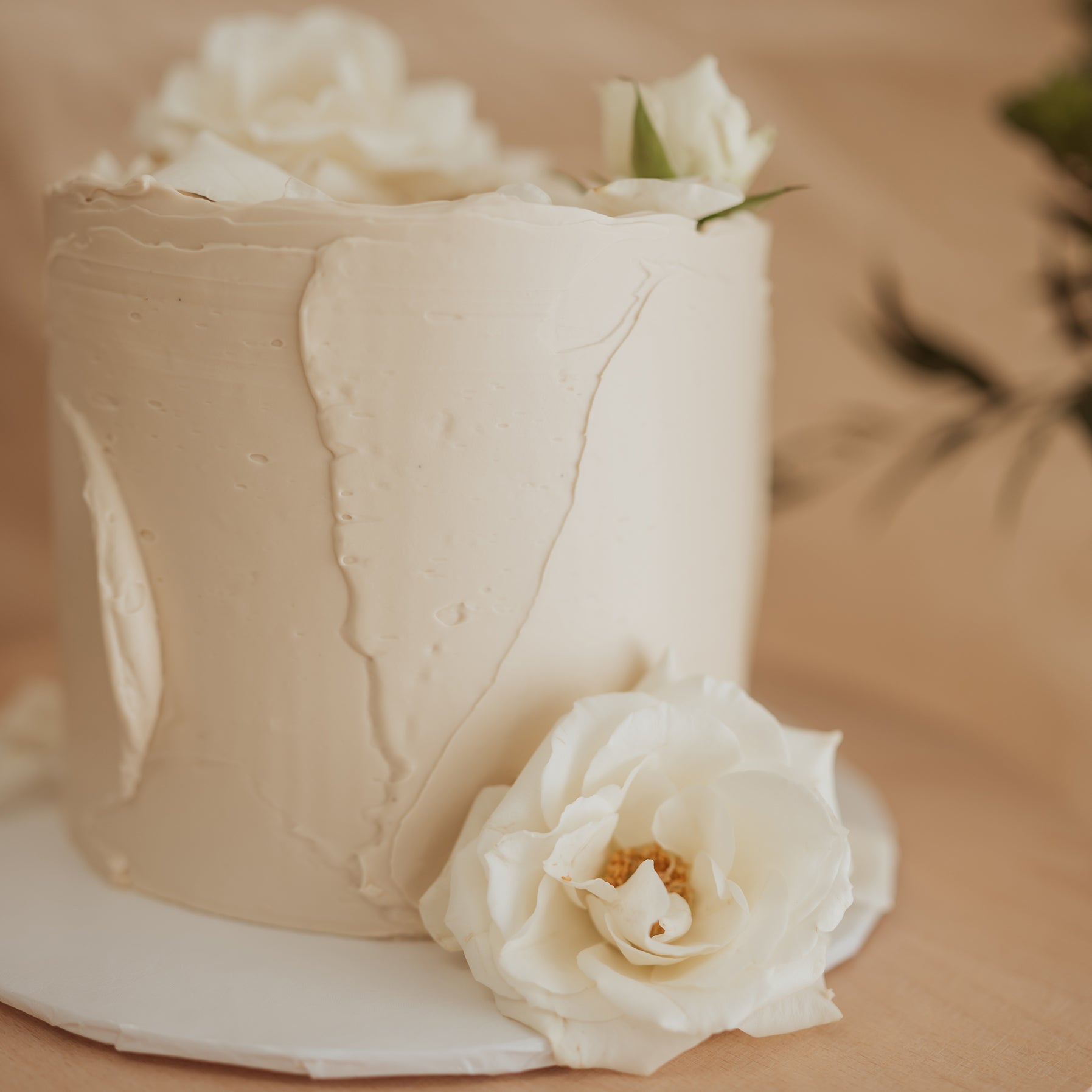 A rustic and romantic option for your next event. Available in your choice flavour and buttercream colour. The cake will be topped with corresponding spray roses.