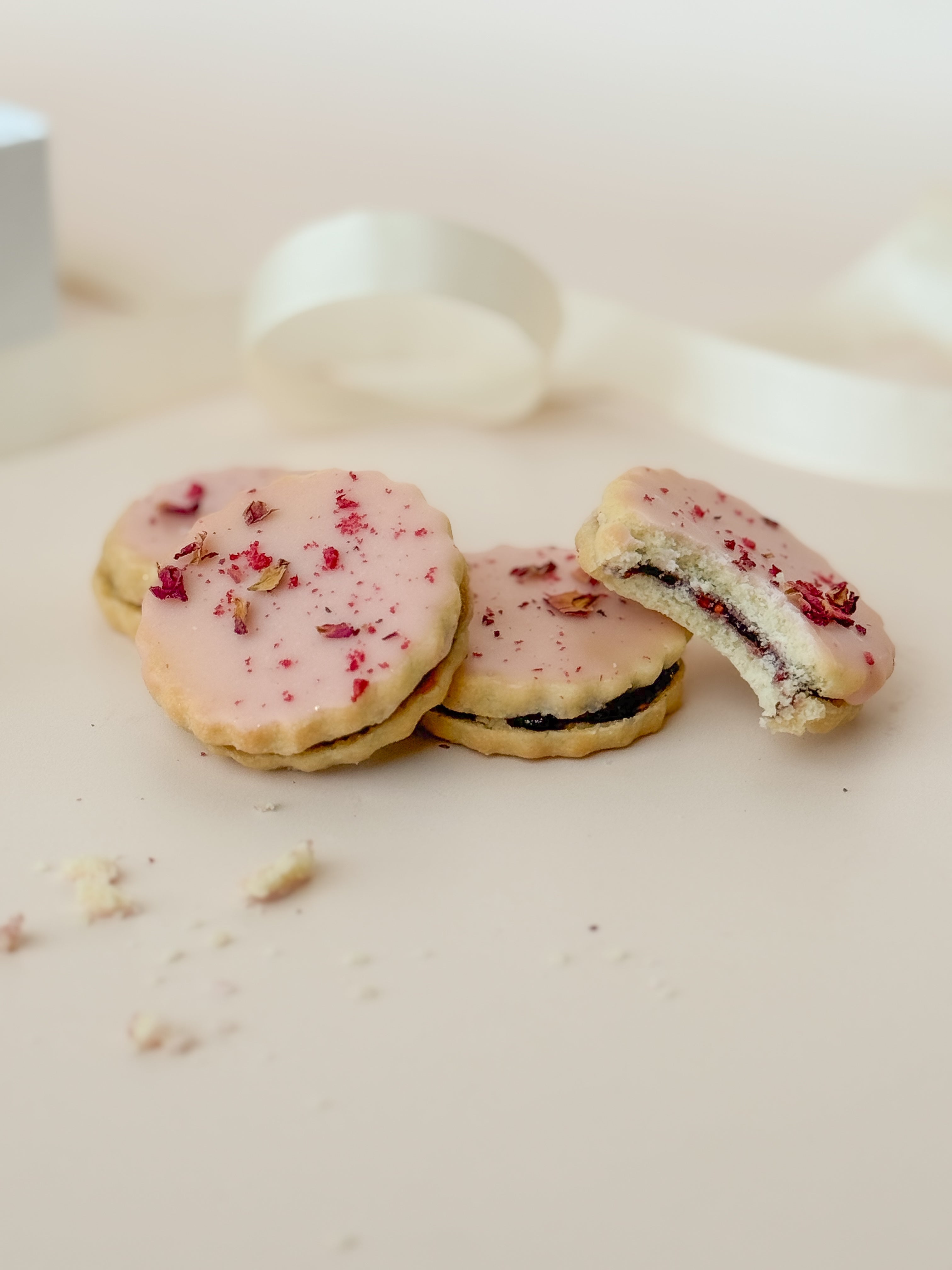 4 Imperial Raspberry rose shortbread cookie sandwiches