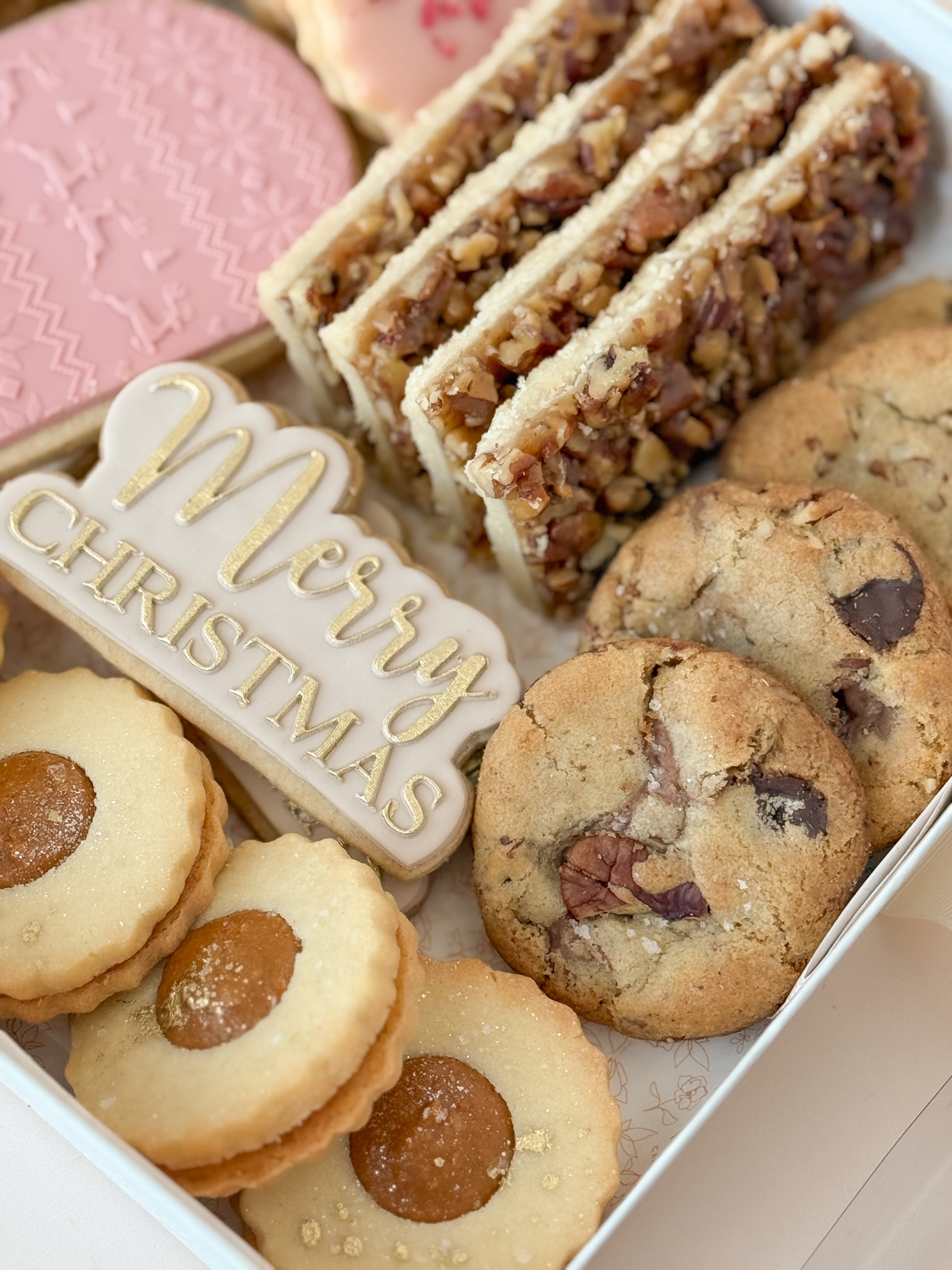 Our most popular Christmas item. A beautiful box filled with our favourite Christmas cookies and treats, with a few new additions this year for 2025!
