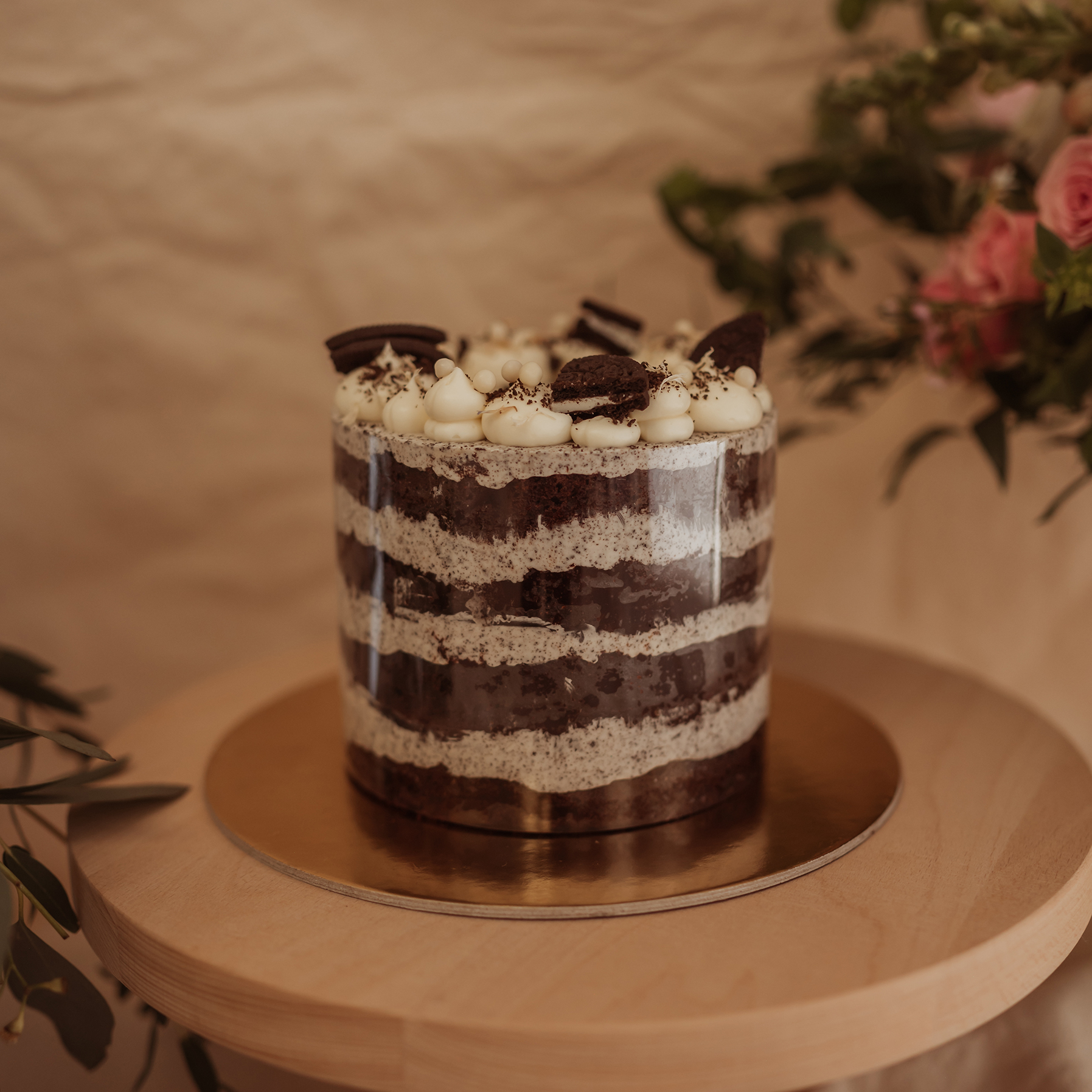 Our classic chocolate cake layered with vanilla and cookie crumb buttercream and crushed oreos.