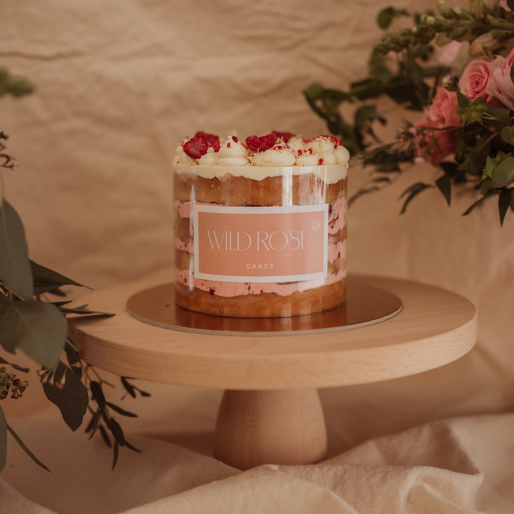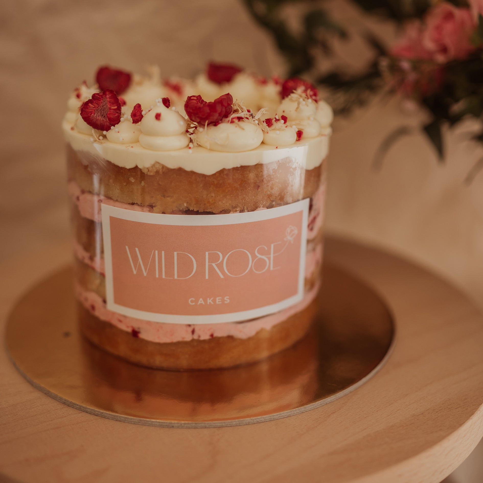A signature Wild Rose Cakes flavour. 4 Layers of Vanilla bean cake, 3 layers of raspberry puree and crushed raspberry buttercream.